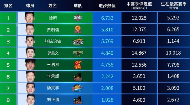 CBA官方:徐昕領(lǐng)銜最具進(jìn)步球員排名榜單 多項(xiàng)數(shù)據(jù)創(chuàng)生涯新高